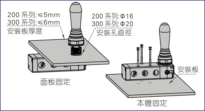 在線咨詢3、各種安裝方式參考下圖。特別注意:面板固定時(shí),安裝板的厚度及安裝孔直徑的大小。